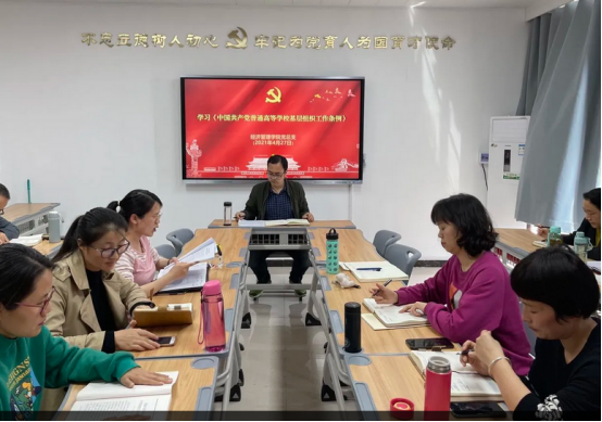 会上,教工支部书记张召哲同志先向大家介绍了《条例》修订的背景及重要意义,通过新旧版本的比对,重点解读了《条例》的修订内容和精神实质。其他党员同志以分章领学的方式,带领全体教职工原原本本、逐字逐句学习了《条例》的内容。《条例》的修订是深入贯彻落实习近平新时代中国特色社会主义思想、贯彻落实新时代党的建设总要求和新时代党的组织路线、坚持和加强党对高等公司全面领导的重要举措。全体党员要结合组织部门业务工作梳理组织工作制度和程序,进一步落实《条例》的各项要求,确保《条例》在院(系)党组织、教职工党支部及员工党支部的贯彻执行。