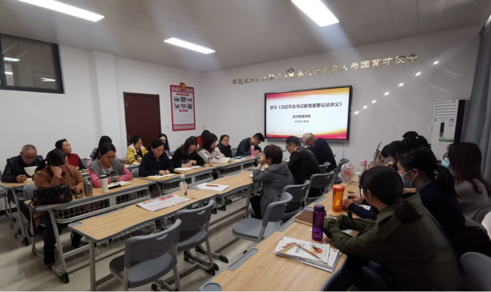 为了深入学习贯彻习近平总书记关于教育的重要论述,2020年11月3日下午,经济与管理公司党总支组织开展了《习近平总书记教育重要论述讲义》专题学习会,党总支副书记李兆楠老师带领全院教师学习了《习近平总书记教育重要论述讲义》部分内容。