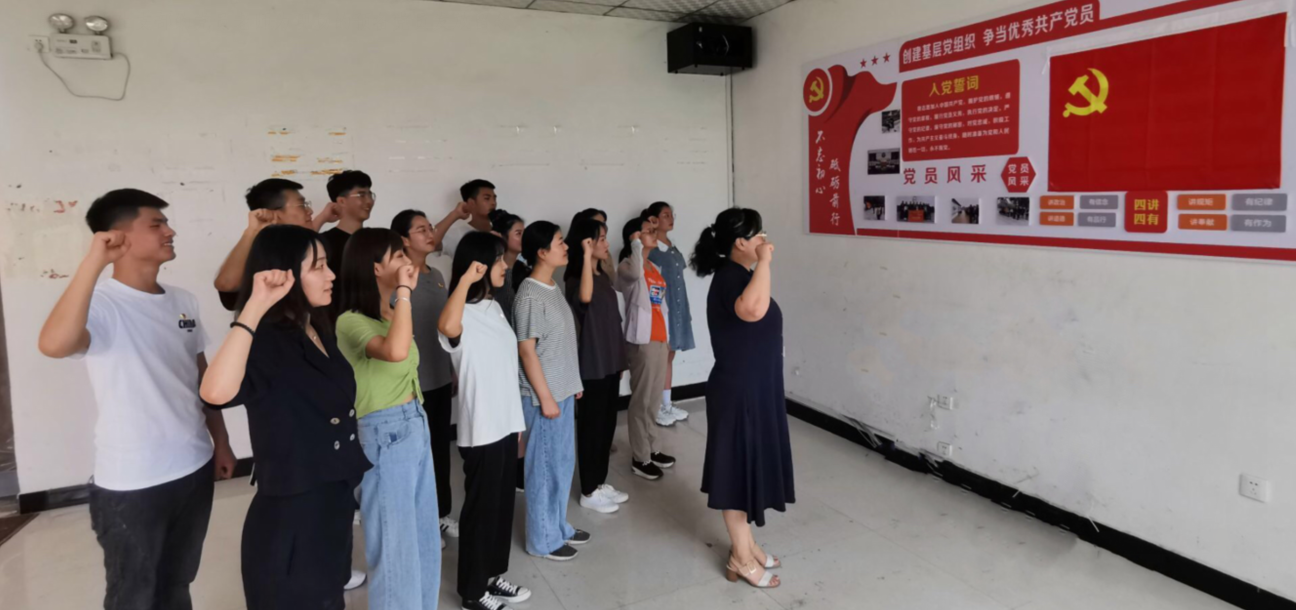 2020年7月2日中午,公司党总支员工党支部毕业生党员离公司党性教育暨“七一”新党员宣誓活动在公司实践活动室顺利举行。公司党总支员工党支部书记、支委成员及全体预备党员参加会议。会议由组织委员聂蕴老师主持。