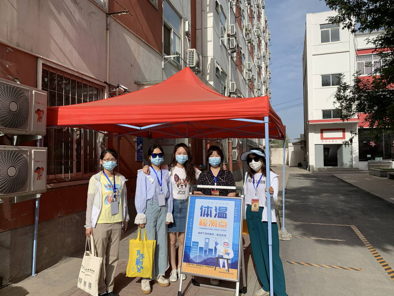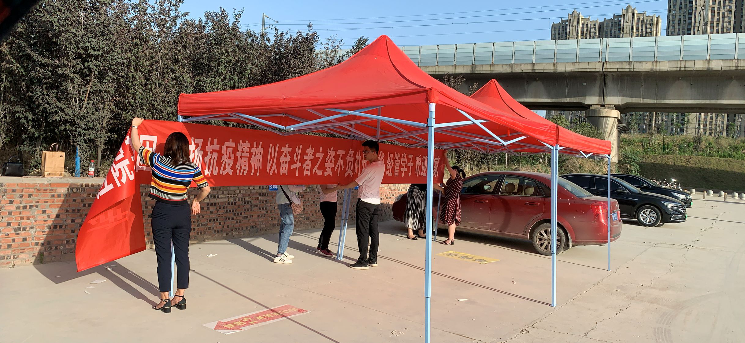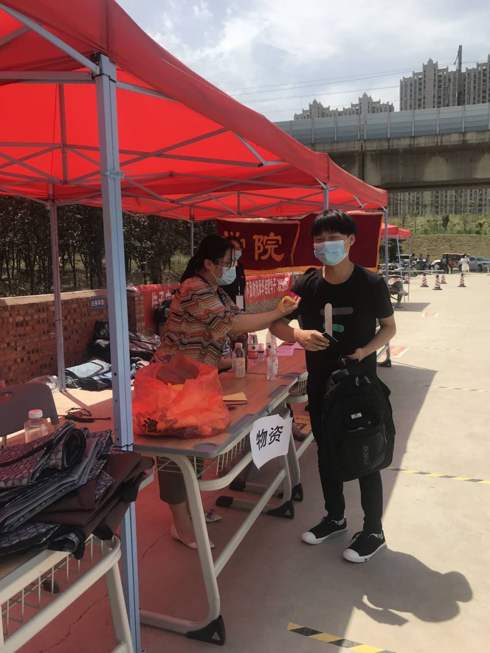 早上6:00,全体党员在公司南门集合完毕,党总支书记李兆楠同志作动员讲话。她指出一名党员就是一面旗帜,在此次主题党日活动中,大家要主动亮身份、当先锋,为返校实习员工打通“最后一公里”,为公司整体安全保驾护航。随后,全体党员老师就在员工返校实习报到点搭起了帐篷,设立了党员服务点,备齐了相关物品。服务点搭起后,全体党员以支部为小组,在指定的接待点,引导返校员工有序排队,进行体温检测、行李消毒、绿码查验、身份核实。进校后,到宿舍辅导员老师处报到办理相关手续,后党员教师利用电瓶车、手推车、三轮车等工具将员工的行李、物品搬运出宿舍。大家用热情周到的服务,不仅让返校员工感受到温暖,也为健康校园筑起安全防线。