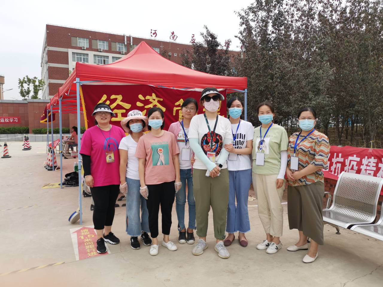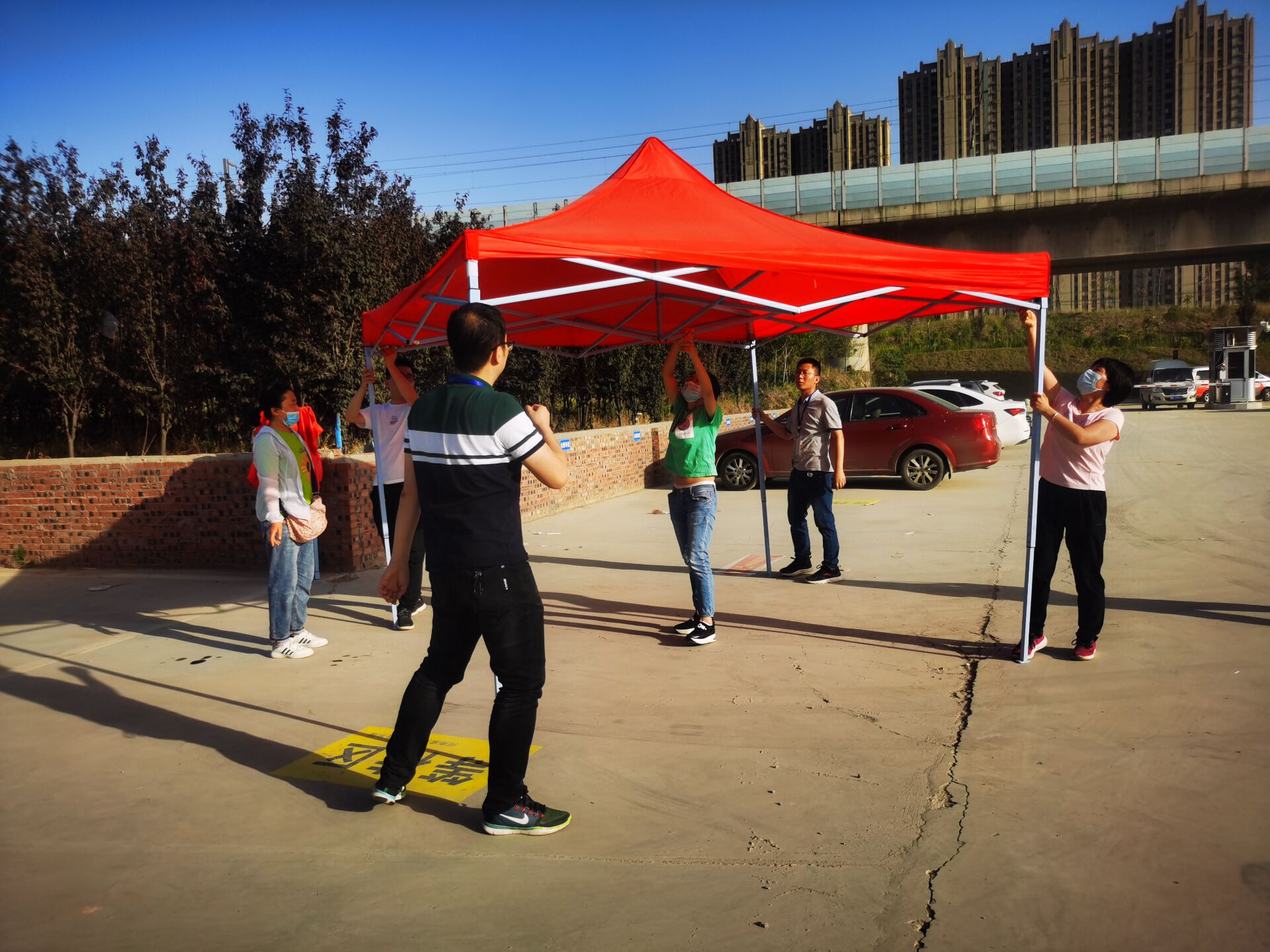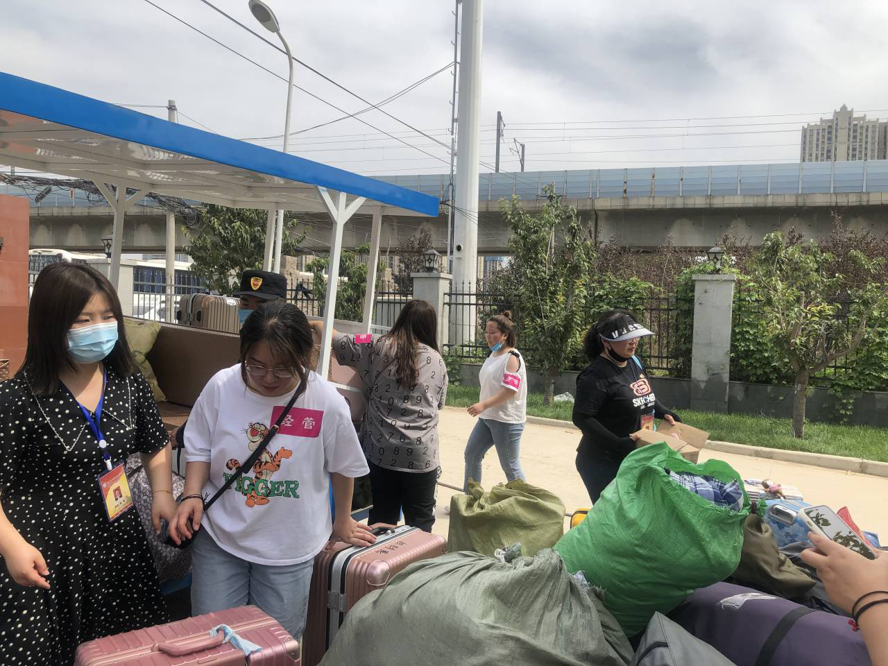 早上6:00,全体党员在公司南门集合完毕,党总支书记李兆楠同志作动员讲话。她指出一名党员就是一面旗帜,在此次主题党日活动中,大家要主动亮身份、当先锋,为返校实习员工打通“最后一公里”,为公司整体安全保驾护航。随后,全体党员老师就在员工返校实习报到点搭起了帐篷,设立了党员服务点,备齐了相关物品。服务点搭起后,全体党员以支部为小组,在指定的接待点,引导返校员工有序排队,进行体温检测、行李消毒、绿码查验、身份核实。进校后,到宿舍辅导员老师处报到办理相关手续,后党员教师利用电瓶车、手推车、三轮车等工具将员工的行李、物品搬运出宿舍。大家用热情周到的服务,不仅让返校员工感受到温暖,也为健康校园筑起安全防线。