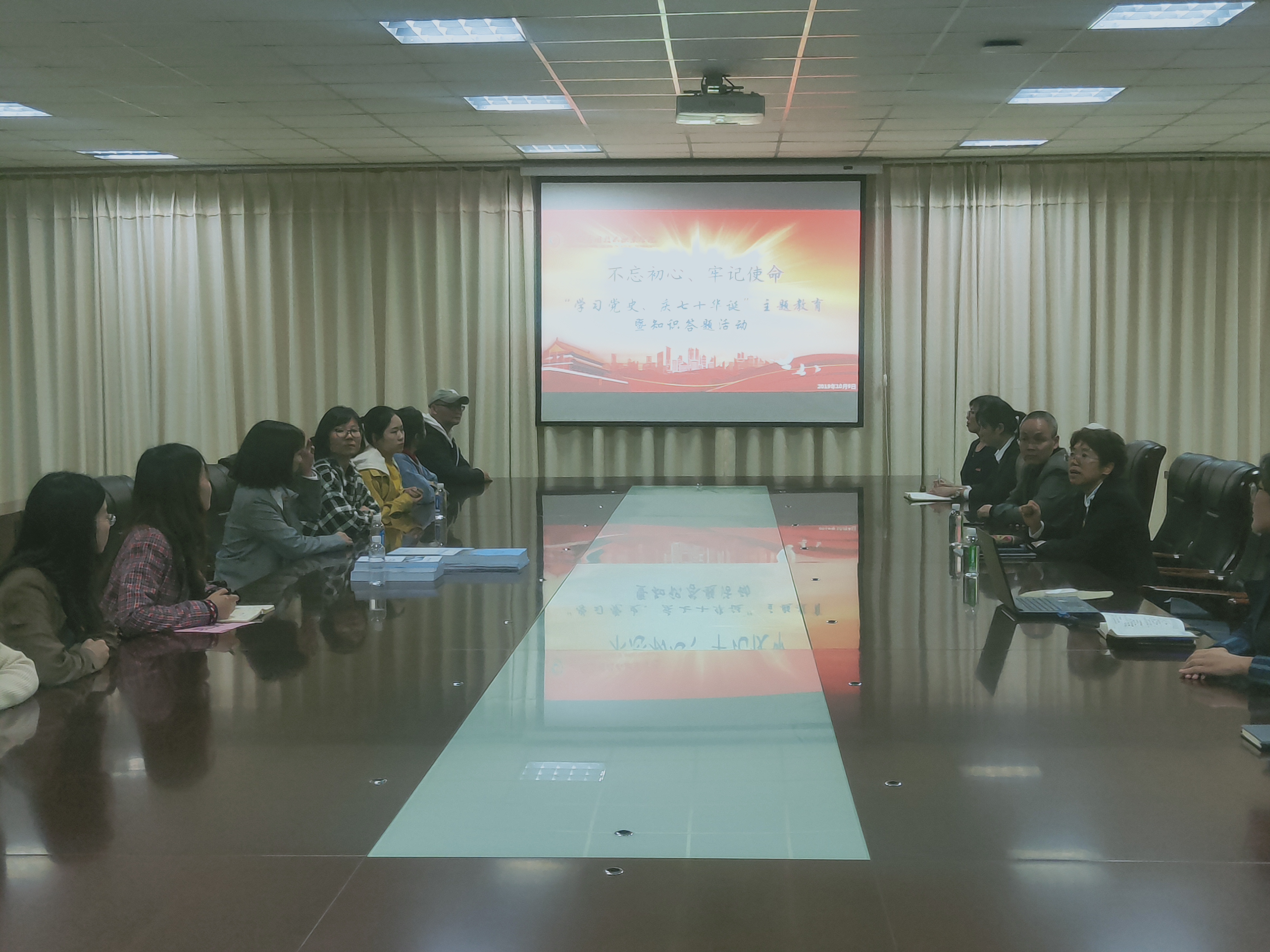 2019年10月9日,公司党总支召开“不忘初心、牢记使命 学习党史 庆七十年华诞”主题教育暨知识答题活动动员会。此次会议由公司党总支书记袁清香同志主持。
