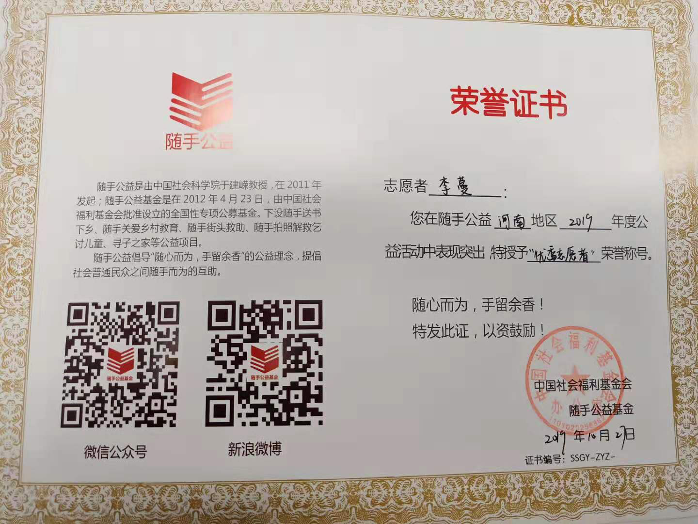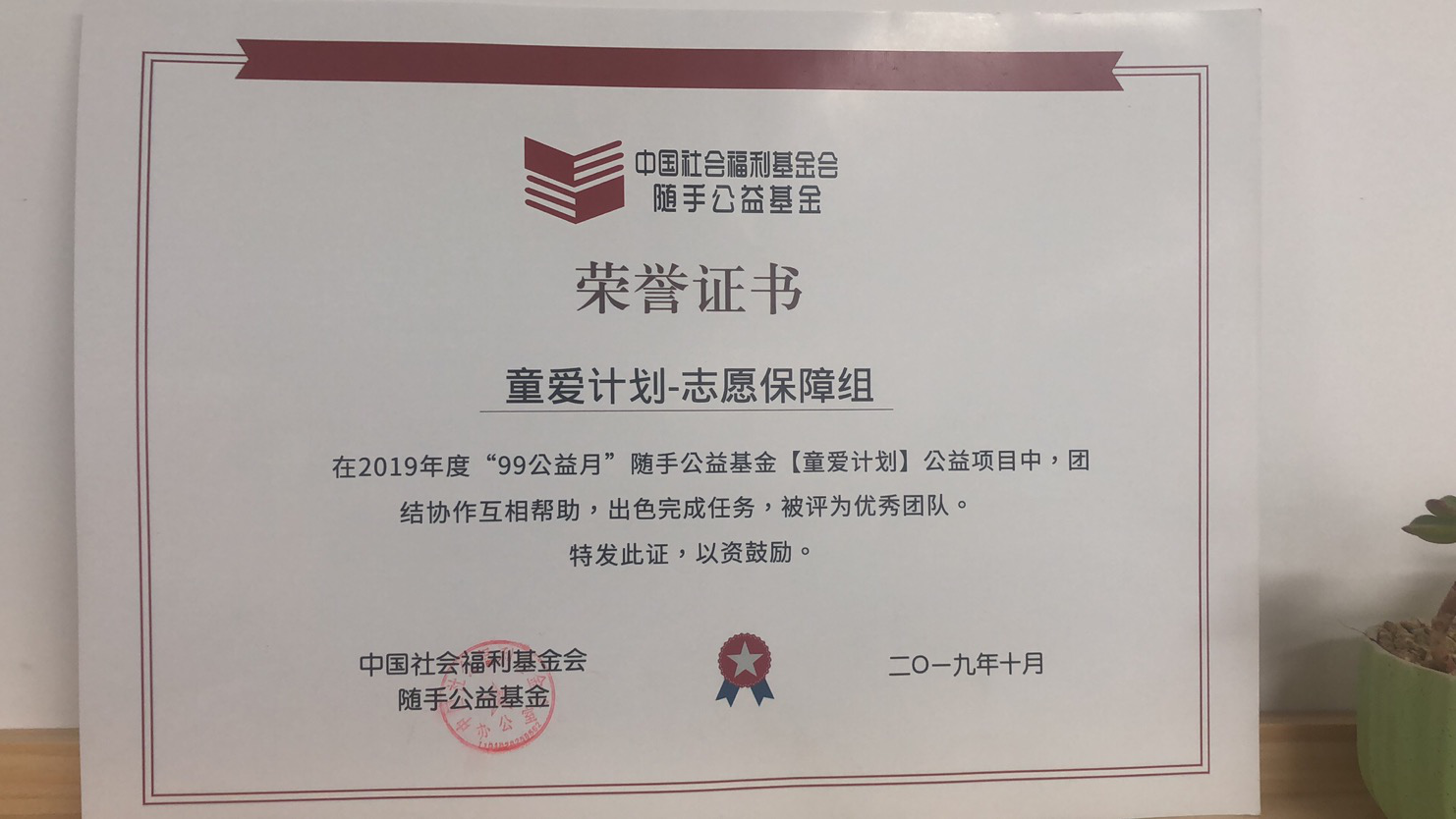 2019年10月27日,由中国福利基金会“随手公益”基金组织举办的“99童爱计划”颁奖典礼在郑州市千玺广场大厦举办,公司党总支员工党支部志愿服务团队应邀参加颁奖典礼。