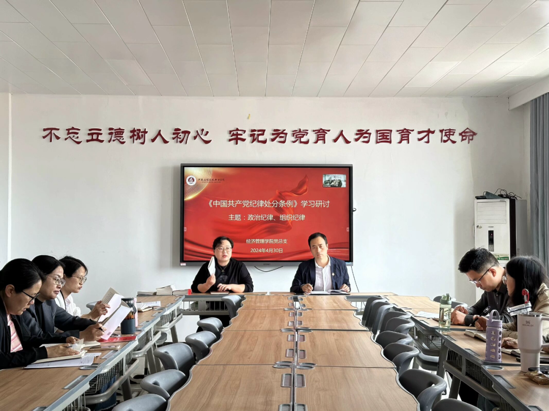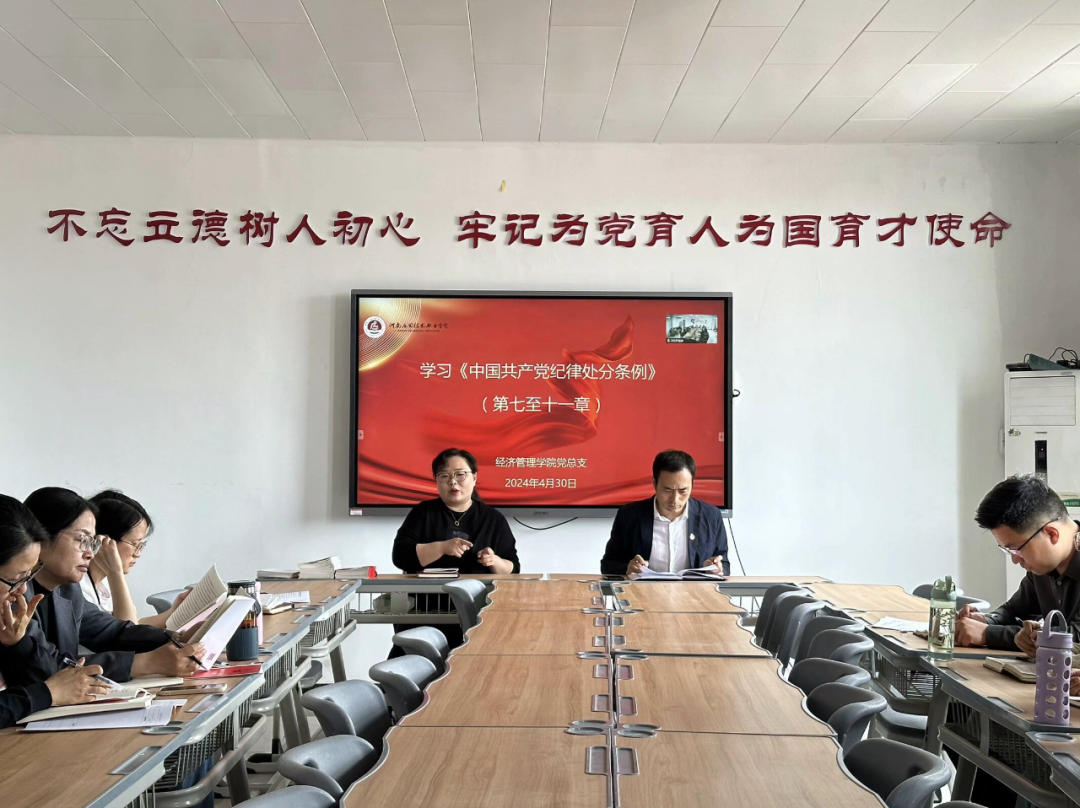 2024年4月30日下午,公司党总支在郑州校区A505、开封校区B306同时召开2024年党纪学习教育专题第二次学习会,书记李兆楠主持会议,东西校区全体党员教师会议。