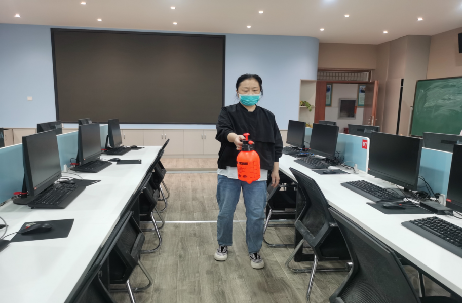 本次演练首先集中学习了疫情防控知识和实训室防控管理流程,然后按照实训室疫情防控预案进行现场模拟演练。整个演练过程有条不紊,各个环节紧密衔接,异常情况处置高效得当。实验管理人员分工明确、反应迅速、协调有序,覆盖了实训室入口体温检测及体温异常员工处置、教学楼内通道管理、实验教学流程管理、实验过程中员工健康检测异常等多个场景。在经管公司各位老师的认真配合下,圆满完成了预定方案的应急演练流程,提高了疫情防控水平和应对突发疫情能力。