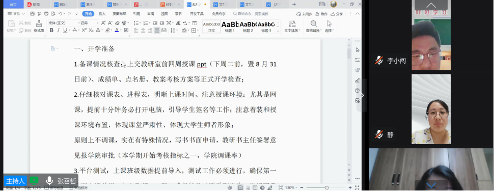 会上,张召哲副经理首先对《304永利集团关于确保2021-2022学年第一学期教学稳定运行方案》进行详细解读和说明,同时要求各教研室主任落实对开学前网络教学工作的安排,对各个任课教师的职责进一步地明确。