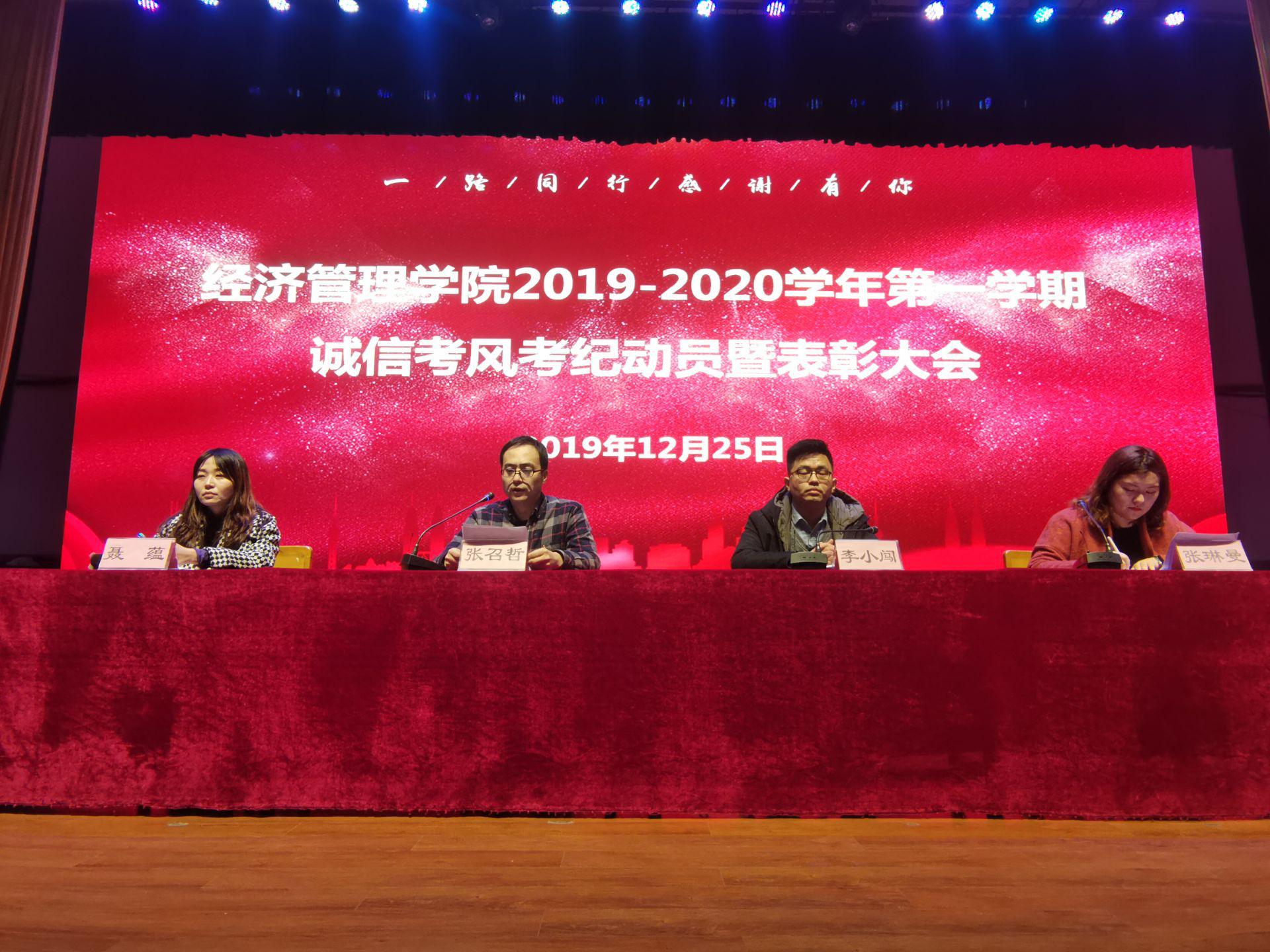 2019年12月25日下午,304永利集团在大礼堂召开2019-2020学年第一学期考风考纪动员暨表彰大会。304永利集团张召哲经理、办公室主任李小闯老师、张琳曼老师及全体辅导员出席会议,团总支书记聂蕴老师主持。