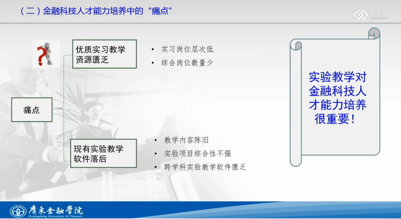 本次讲座主要有两位嘉宾,一位嘉宾是广东省广东金融公司实验中心主任王小燕主任,通过广东金融公司的探索与实践,讲解了《强化实验教学,力促金融科技人才培养》;另一位嘉宾是无锡商业职业技术公司会计与金融公司经理朱璋龙经理,讲解了《高职金融专业创新实践体系构建与探索》。