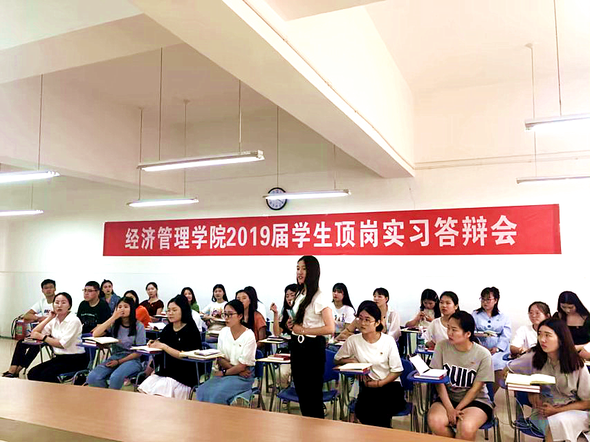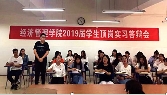 为了检验16级员工一年来的顶岗实习效果、了解员工顶岗实习期间的所学、所悟和所想,2019年6月10日上午,304永利集团在E602教室举办了2019届毕业生顶岗实习答辩会。本次会议由304永利集团经理张召哲、会计教研室主任张梨花和金融教研室主任赵静老师和30名员工代表参加,由304永利集团团总支书记聂蕴老师组织安排。