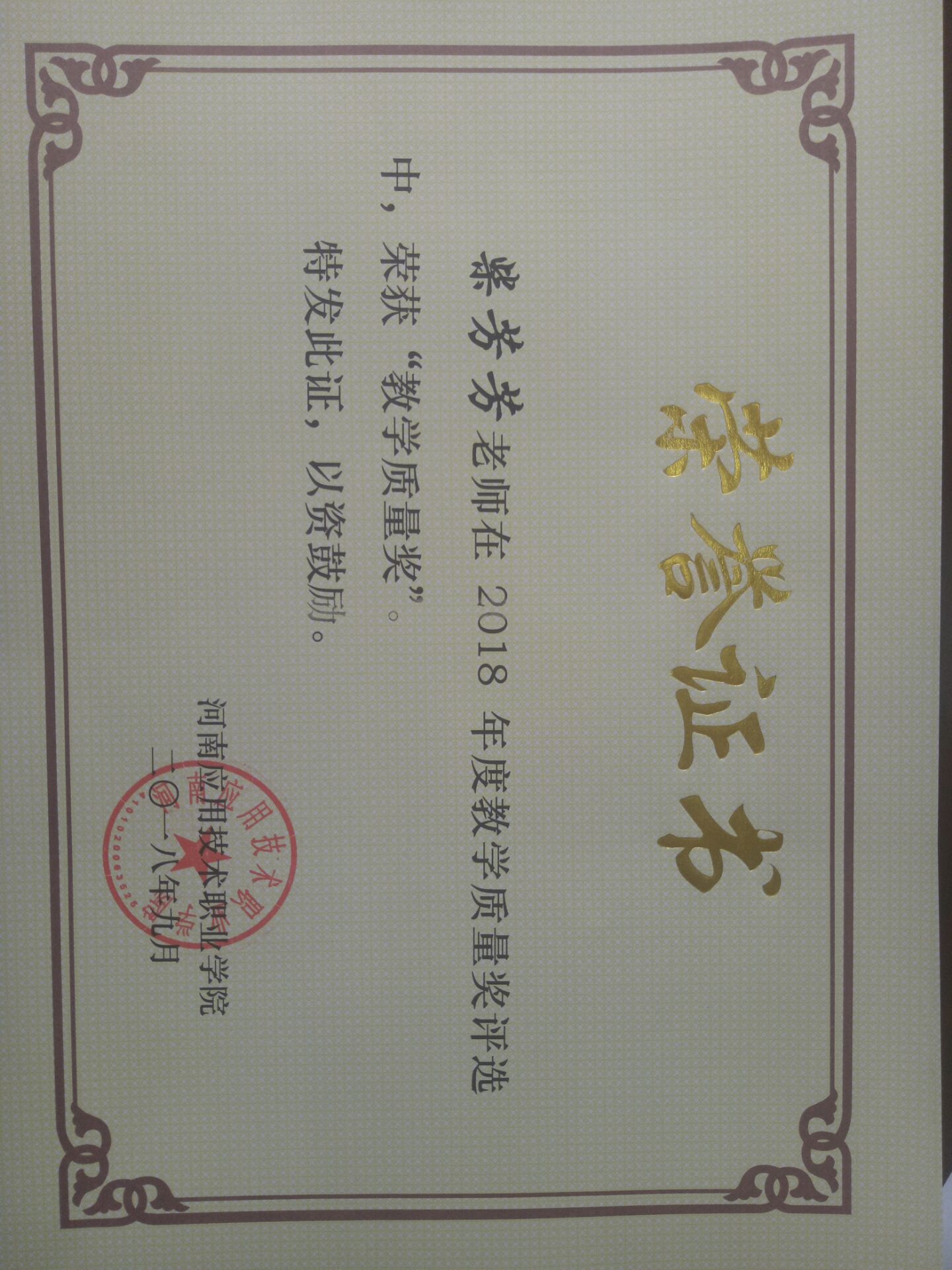 柴老师一直在教学一线工作,积累了较为丰富的教学经验,形成了自己的教学特色,在教学过程中一直得到员工的欢迎和同行的肯定。