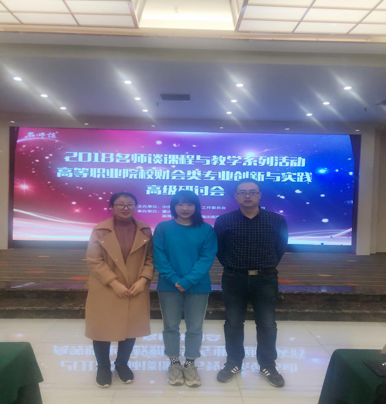 2018年11月30日至12月3日,会计公司张召哲、张梨花、张晓凤三位老师参加了由中国职教学会教学工作委员会主办,高等教育出版社上海出版事业部和重庆财经职业公司承办的“2018名师谈课程与教学系列活动——高等职业院校财会类专业创新与实践高级研讨会”。本次会议由来自全国80多所高职院校的200多名教师参会,共同探讨了会计行业新动态、会计竞赛新发展以及会计教育新变革等话题。