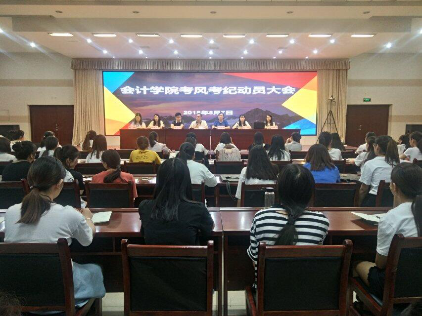 期末来临之际,为加强会计公司员工诚信教育,严肃考风考纪。培养员工规矩意识,强化会计公司院风学风建设,营造积极向上的良好氛围,做到文明安全离校,合理安排假期生活。会计公司于2018年6月7日18:30,组织召开会计公司2017-2018学年第二学期考风考纪动员大会。