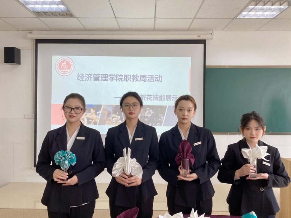 304永利集团职教活动周之餐巾折花技能展示于2022年5月11日举行,餐巾花造型美观、生动形象,选手们动作娴熟、妙手生花,展示了扎实的基本功。大赛充分展示了经管学子扎实的专业知识、熟练的操作技能和精益求精的专业精神。