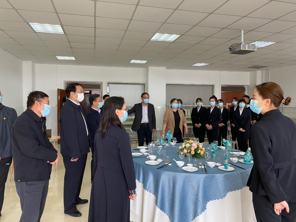 党委书记闫俊山、董事长范晓伟等校领导亲临现场指导,员工们的精彩展示赢得了到场领导老师们的阵阵掌声,他们与员工就专业学习、基本功训练、技能竞赛等情况进行了深入交流,对员工抗疫期间的生活及心理动向表示关怀,鼓励同学们在特殊时期更要同心坚守,共待春晖。