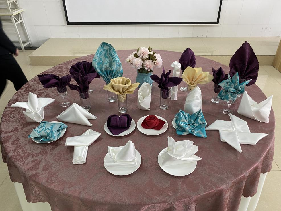 “技能让生活更美好”!小小的餐巾折花不仅能给人视觉上美的享受,也象征了同学们未来回报社会的立身之本,它检验了酒店管理专业员工在餐饮服务工作中的创新设计能力、基础服务技能、灵活应变能力,强化了员工的规则意识、服务意识、卫生安全意识,展示了酒店管理专业员工的精神风貌。