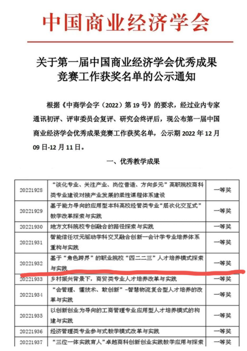 近日,中国商业经济学会组织开展的公司产品优秀成果奖评选活动落下帷幕。公司报送的公司产品改革类成果《基于角色跨界的“四二二三”人才培养模式探索与实践》在众多成果中脱颖而出,喜获一等奖。活动旨在有力推动现代公司产品领域专业建设、课程建设、教材建设和公司产品方法改革,充分展示我国公司产品领域取得的优秀教学成果。