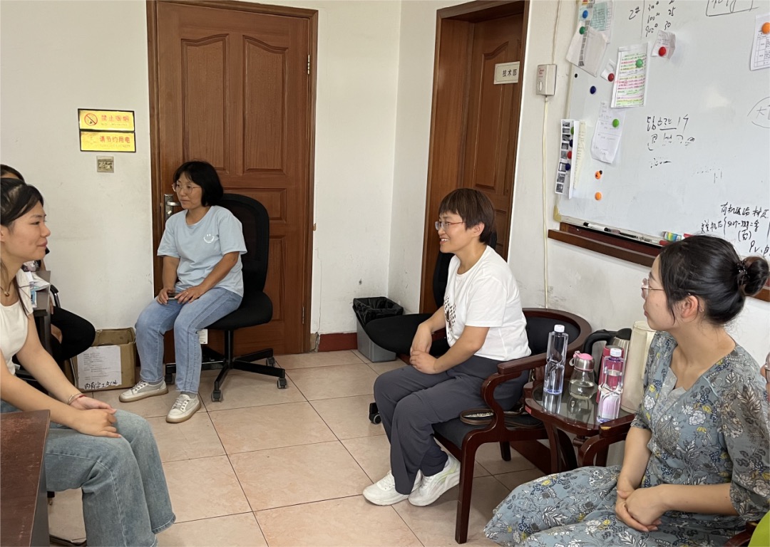 王盼红一行在员工的带领下,实地参观了实习场所、环境和氛围。在边走边看边聊中,了解岗位员工实习内容、工作状态、生活体验等基本情况。