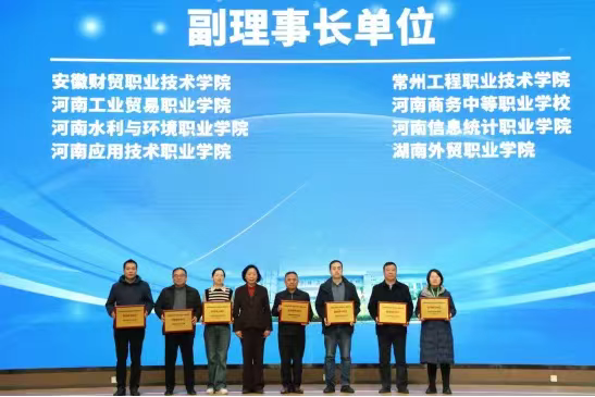 河南省教育厅党组成员、副厅长朱自锋,中国国际贸易促进委员会河南省委员会(中国国际商会河南商会)会长张艳,中国商业联合会执行会长王民,高校毕业生就业协会职教工委会秘书长、金华职业技术公司副董事长陈海荣,阿里巴巴副总裁、浙江银泰百货有限公司董事长陈晓东,河南财经政法大学副董事长张扬出席大会并携手启动共同体成立仪式,之后分别为理事长单位、副理事长单位授牌。