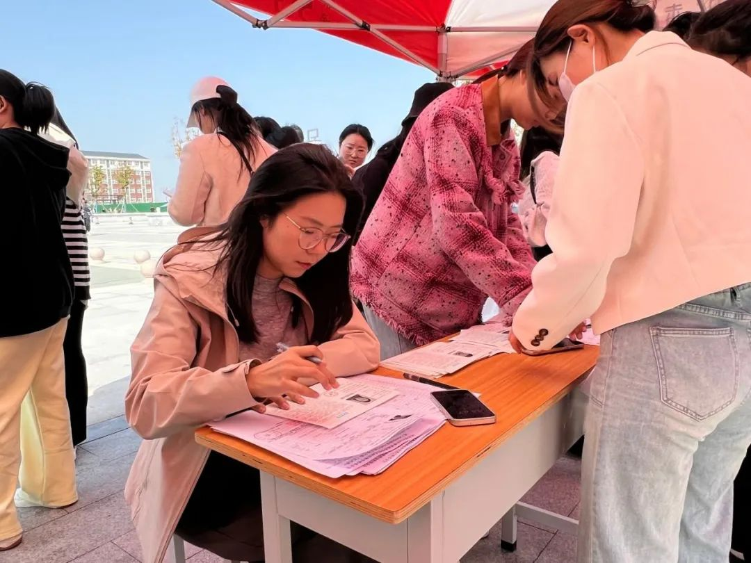 3月31日下午,青年志愿者配合2021级辅导员协助考生进行信息登记、信息核对、分发准考证等。同时,青年志愿者还积极配合校青年志愿者进行“无声演练”考前模拟、楼层指引等工作。