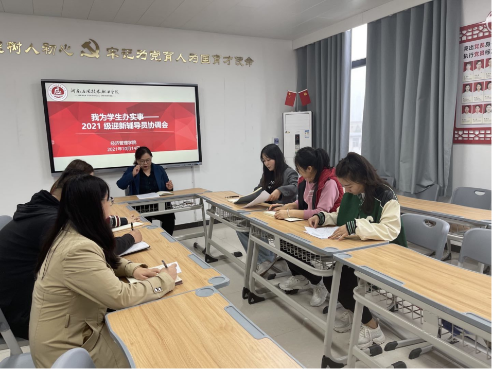 10月14日下午,304永利集团在办公楼505召开2021级迎新辅导员协调会。304永利集团全体新生辅导员参加会议,会议由团支书书记聂蕴主持。