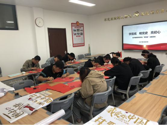 活动中,张琳曼老师先是对剪纸文化进行科普,又给大家展示了相关剪纸作品,让现场的每个人在感受传统文化氛围的同时加深了对党的认识。剪纸,作为非物质文化遗产,有着丰厚的民族文化底蕴。老师现场传授剪纸工艺,同学们灵活的巧手在红纸上飞舞,手拿剪刀兴趣高涨,方寸之间、情意满满,红纸虽薄,情怀却浓,蕴含着对党的祝福和感恩。通过非遗剪纸重温革命精神,感受初心使命,让党史文化学习接地气、添声色。