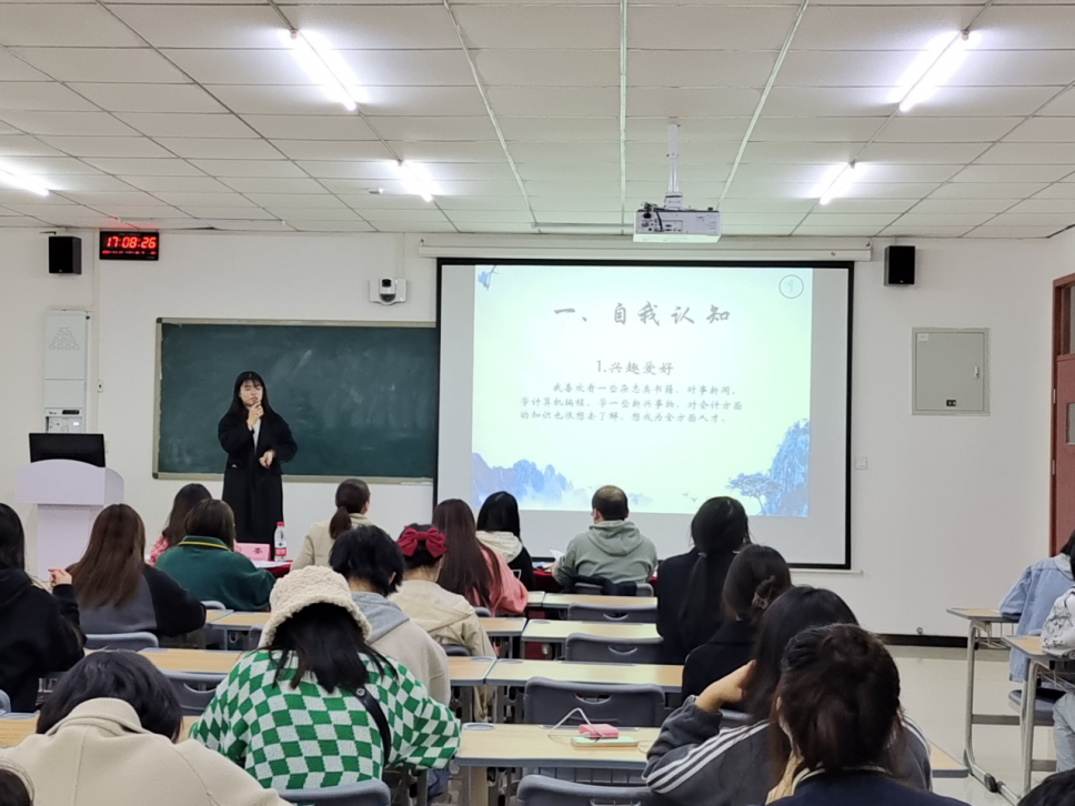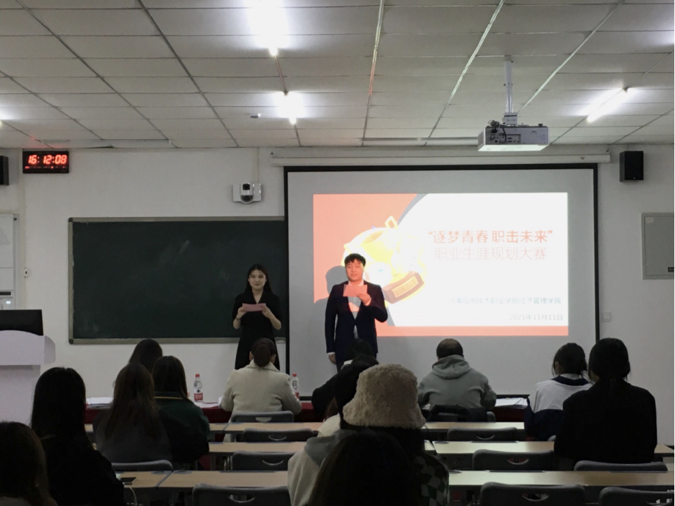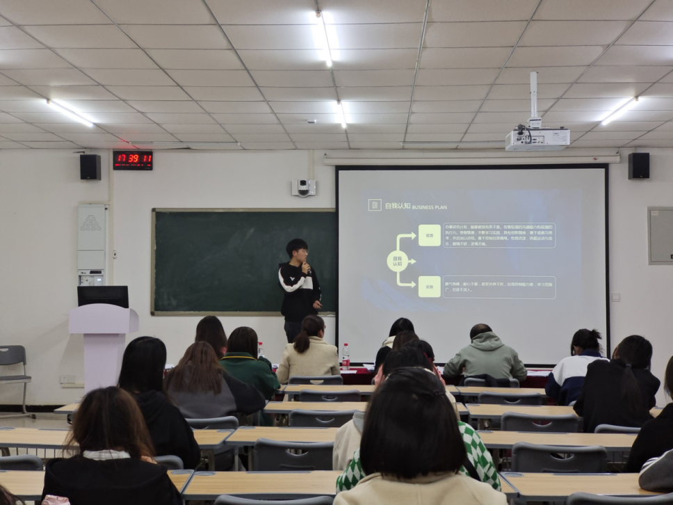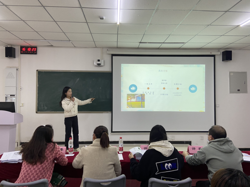 经过前期的作品遴选、修改打磨后,共12位选手站在比赛的现场同台竞技,以“逐梦青春 ‘职’击未来”为主题,对个人职业生涯规划进行现场汇报展示。选手们自信从容地将个人职业蓝图娓娓道来,从职业测评结果、SWOT分析、自我认知、职业定位、评估调整方案等角度多维度剖析。他们统筹专业优势、兴趣爱好和性格特点,客观认识外部环境,结合个人经历与实践经验确定了职业目标。选手的职业规划有注册会计师、投资专员、审计员、风控员等,根据岗位要求制定了阶段性计划,向理想职业不断努力,充分体现了“逐梦青春 ‘职’击未来”的活动理念。