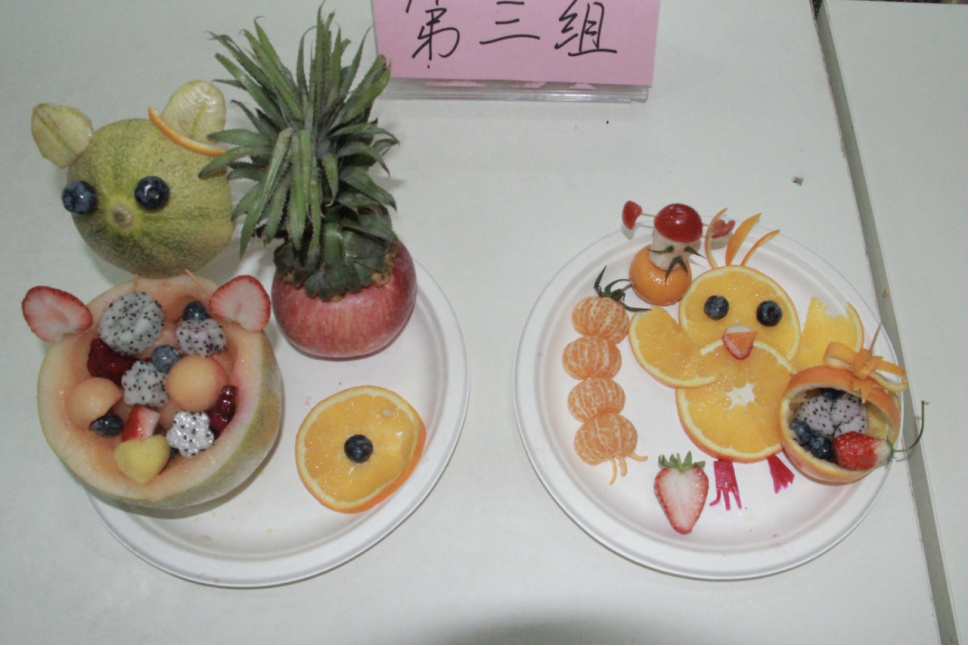 大家对于这次水果拼盘都表现出了极大的热情。活动还没正式开始,参赛队伍就已经早早来到比赛场地,观众们也陆陆续续进场。活动中,各个选手们发挥想象力,制作了各种有创意的水果拼盘,使人大饱眼福,垂涎三尺。比赛一开始,选手们争分夺秒地削皮、雕刻,运用牙签、勺子等辅助工具把苹果、西瓜、橘子、哈密瓜等水果切割成各种新颖形状。赛场上果香四溢,色彩鲜艳的水果在员工们的手上变成了富有创意的艺术品。为营造意境,突出主题,材料上的准备也极为丰富,各式水果拼盘从造型、构思意念到名称都极尽心思,充分体现同学们准备的精心及创意。从作品中所展示的不仅是选手们精湛的手艺,更是展示他们的想象力、创造力以及自身的文化素养。