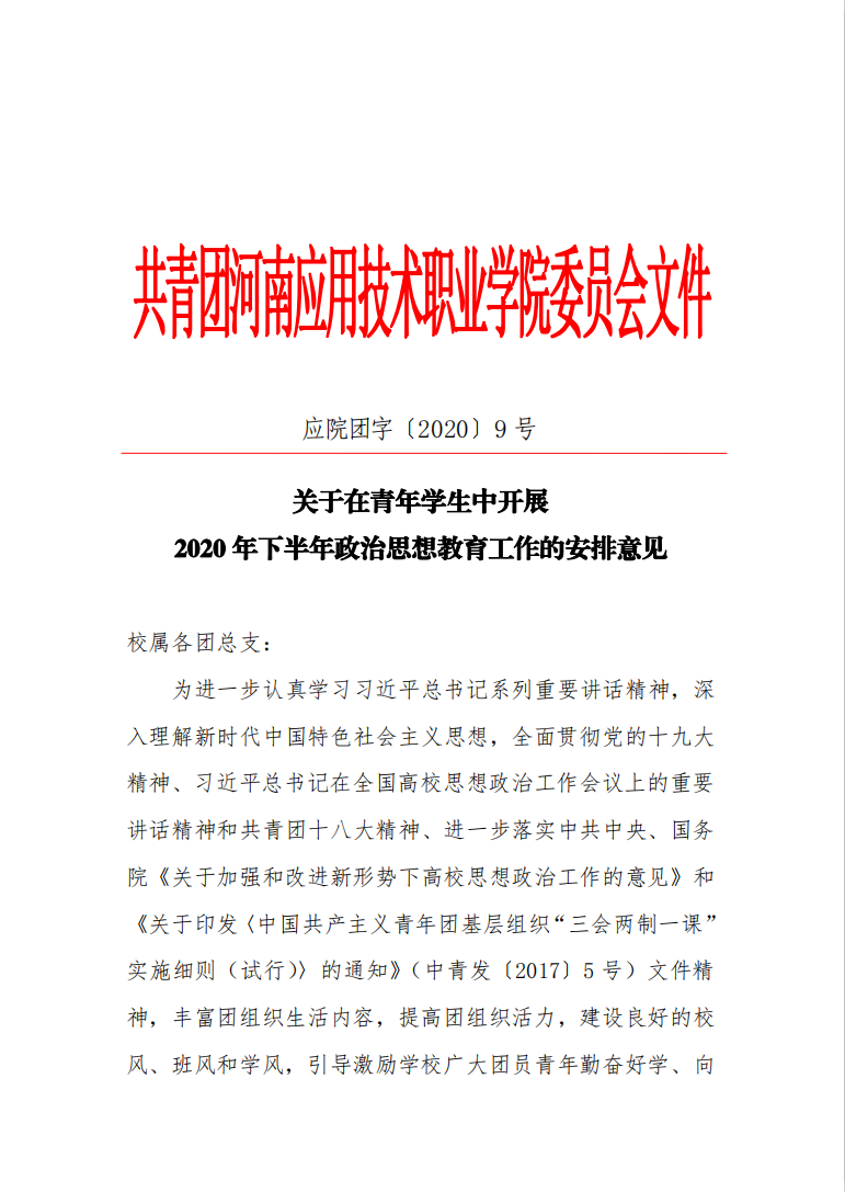 关于在青年员工中开展2020年下半年政治思想教育工作的安排意见