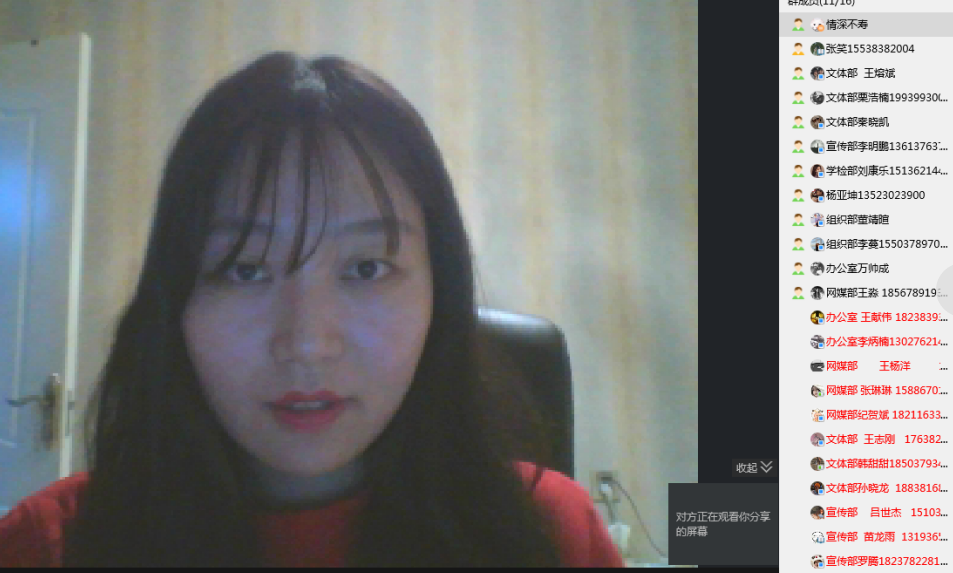 关于疫情防控,聂老师要求各位员工干部充分发挥头雁作用,在各个方面都要起到引领表率,对于疫情不传谣、不信谣、不造谣,对于热点事件,配合公司做好正面舆论的引导。关于学风督导,聂老师要求各位员工干部充分发挥组织协调作用,严格遵守公司“线上教学”的课堂纪律和要求,保证各门课程线上教学的正常开展;关于员工活动,聂老师指出疫情非常时期是对公司员工工作的一个考验,更是我们改进工作的磨刀石,要通过这个时期的工作来检视我们这支团学队伍能不能在关键时期站得稳、打得响、有创新、有特色。