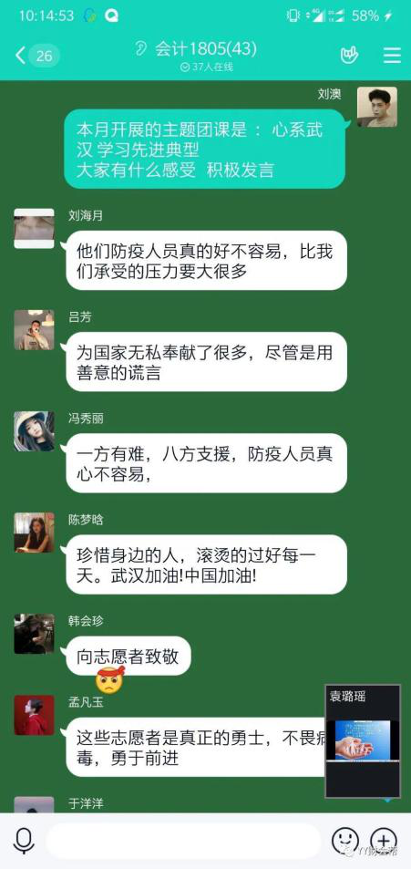 同学们积极参与讨论,表达自己的想法,并纷纷向武汉向祖国表达自己的祝福。