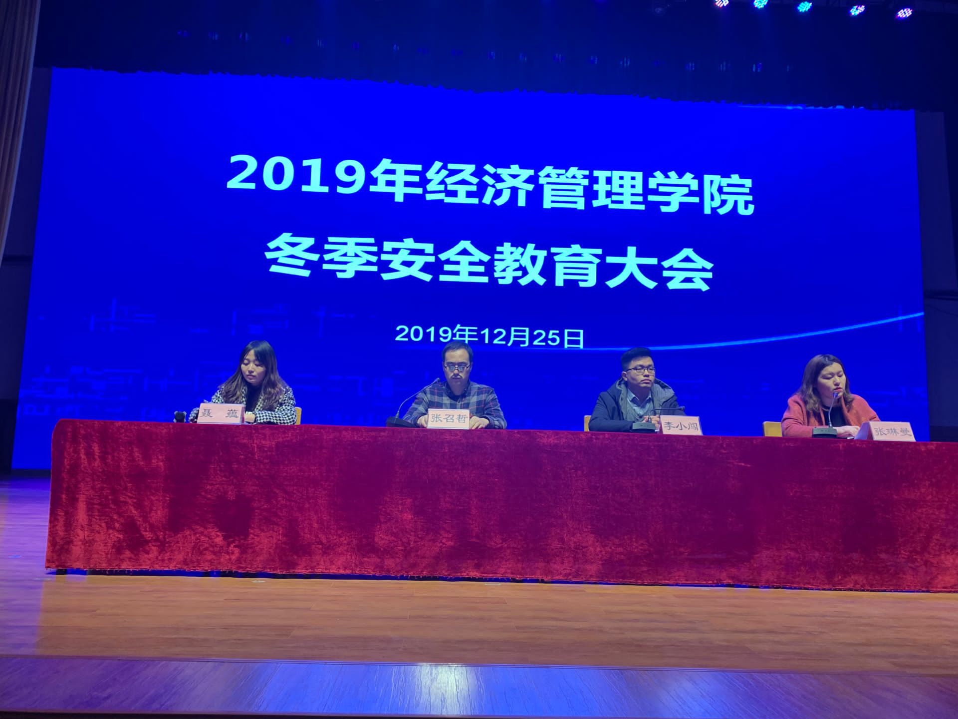 为提高全体员工假期前后安全意识,落实公司安全管理制度,304永利集团于2019年12月25日下午17点30在公司大礼堂召开冬季员工安全教育大会。出席本次会议的有304永利集团张召哲经理、办公室主任李小闯老师、张琳曼老师及全体辅导员,会议由团总支书记聂蕴老师主持,2018、2019级全体员工参加。