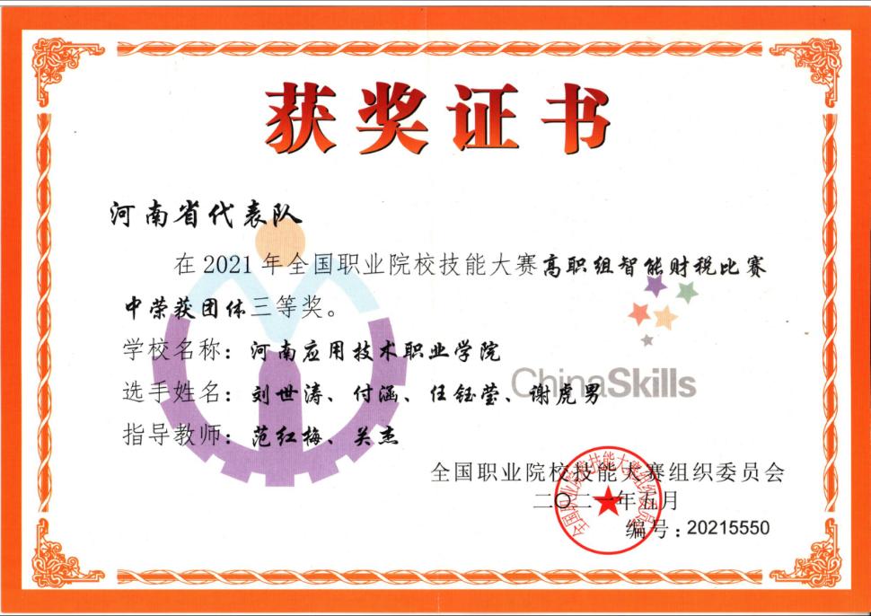 注会1902班是一个团结向上的班集体。同学们有强烈的集体荣誉感,该班曾获公司先进班集体。班级学风浓郁,得到了任课老师的一致好评。全学年专业课平均成绩年级第一。5人在大一、大二期间已通过全国会计专业技术初级资格证书。该班刘世涛同学在2021年河南省高等职业教育技能竞赛智能财税赛项中,以总分河南省第一名的成绩获得一等奖,在2021年全国职业院校技能大赛高职智能财税比赛中,获得三等奖,刘世涛本人获得了2021年国家奖学金。该班罗艺萌同学在全国个税计算职业技能大赛总决赛中取得二等奖的优异成绩。班内多位同学获得2021年全国老员工英语竞赛(NECG5)、2021全国高等职业院校发明杯老员工创新创业大赛、2020年长三角全球创意设计大赛、2020全国老员工职业发展大赛等各项奖,班级形成了比学赶帮超的氛围。