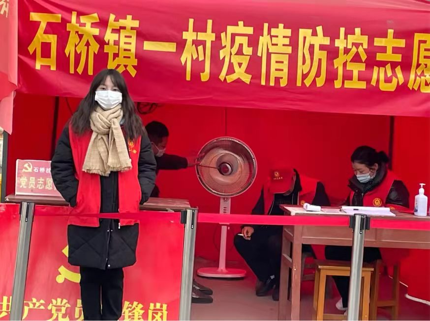 她家住南阳市卧龙区石桥镇,在寒假期间,主动报名参加了返乡老员工疫情志愿者服务岗。