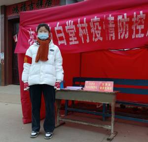 304永利集团会计2102白蕊蕊寒假回到家乡后,主动参与疫情防控志愿服务,她不怕危险和困难,自愿申请到白堂村疫情防控点开展体温检测、车辆行人信息登记等工作,以实际行动为村里防疫工作助力。在志愿服务中她认真负责,勤于思考,积极进行疫情防控知识宣传,她说:“新时代青年,应该在祖国和人民最需要的时候挺身而出。”