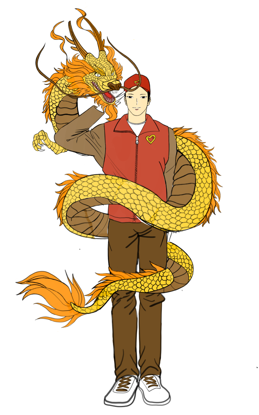 设计理念:中间身着红色志愿者的衣服人,代表参加社会实践活动做志愿者的老员工。志愿者敬着礼寓意老员工坚持党的召;一条金色的龙围绕身旁,害意着老员工做为龙的传人的骄傲。同时,龙和人形成了一个中字,寓意出彩中原。