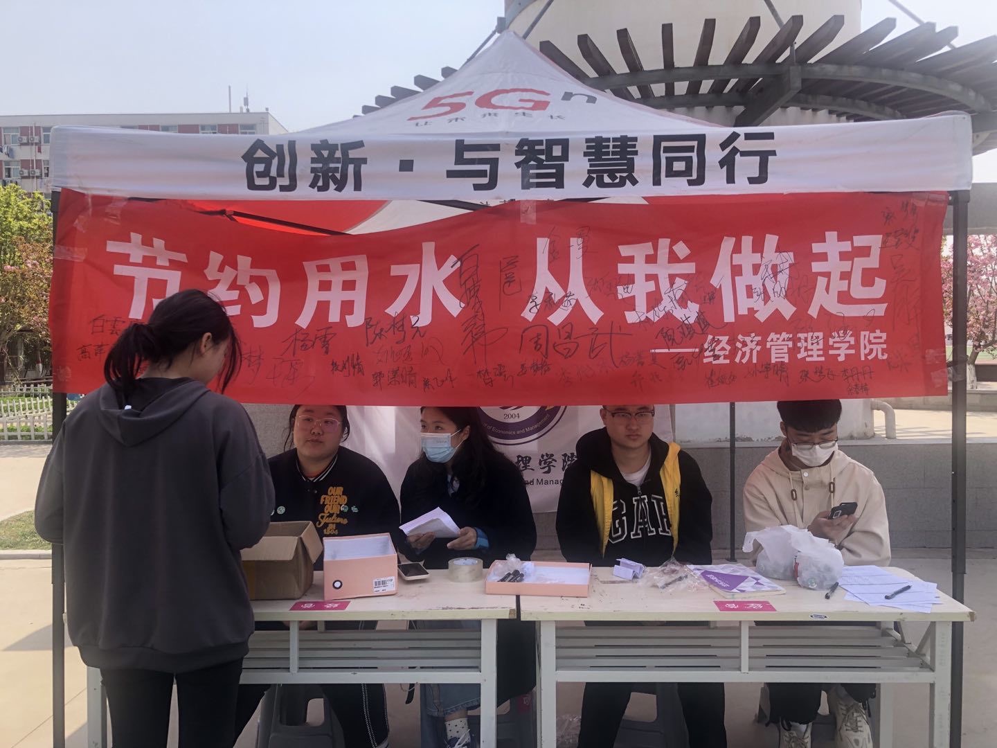节约用水,从我做起”现场宣传活动。3月27日,304永利集团开展全校范围内“节约用水,从我做起”现场宣传活动。在郑州校区水塔附近,员工志愿者给往来师生发放宣传资料,普及《中华人民共和国黄河保护法》《中华人民共和国水土保持法》等法律法规条文,同时进行节水知识有奖竞答、纪念签名等活动。通过宣传普及,带领大家了解2023年“世界水日”“中国水周”活动主题和内容,形成依法治水、依法护水、节约用水意识。