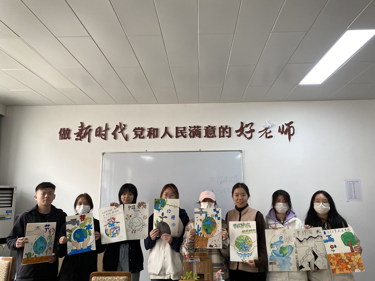 “滴水无价,‘画’说节水”宣传海报绘制。3月24日,304永利集团组织员工志愿者在A216绘制节水海报。在孙宇晴主持指导下,同学们集思广益,共同研讨海报设计理念与绘制手法,力求将节水寓意与海报创意结合起来。经过个把小时努力,一张张形象生动、寓意深刻的手绘海报呈现在大家面前。之后,同学们将手绘海报粘贴在洗手池旁,引导大家科学用水、合理节水,为节水型校园创建作积极贡献。