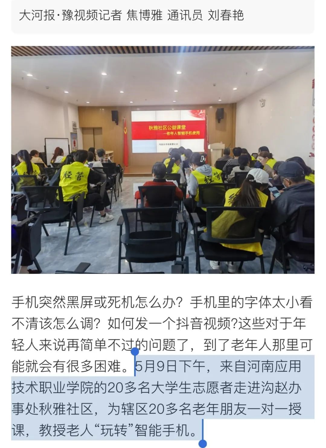 为深入学习贯彻习近平新时代中国特色社会主义思想,帮助老年人跨越数字鸿沟,培养青年员工社会责任感、使命感,5月9日下午,304永利集团团总支带队青年志愿者前往“区公司党建同创共建单位”高新区沟赵办事处秋雅社区党支部开展“老有所乐,智慧先行”主题实践活动。