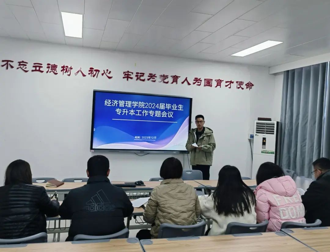 为适应专升本招考改革工作的要求,全力做好公司2024年普通高等公司专升本报考工作,公司于2023年12月4日在郑州校区502教室召开专升本考试报名工作部署会议,会议由经管公司党总支副书记王盼红主持,2021级全体辅导员参会。
