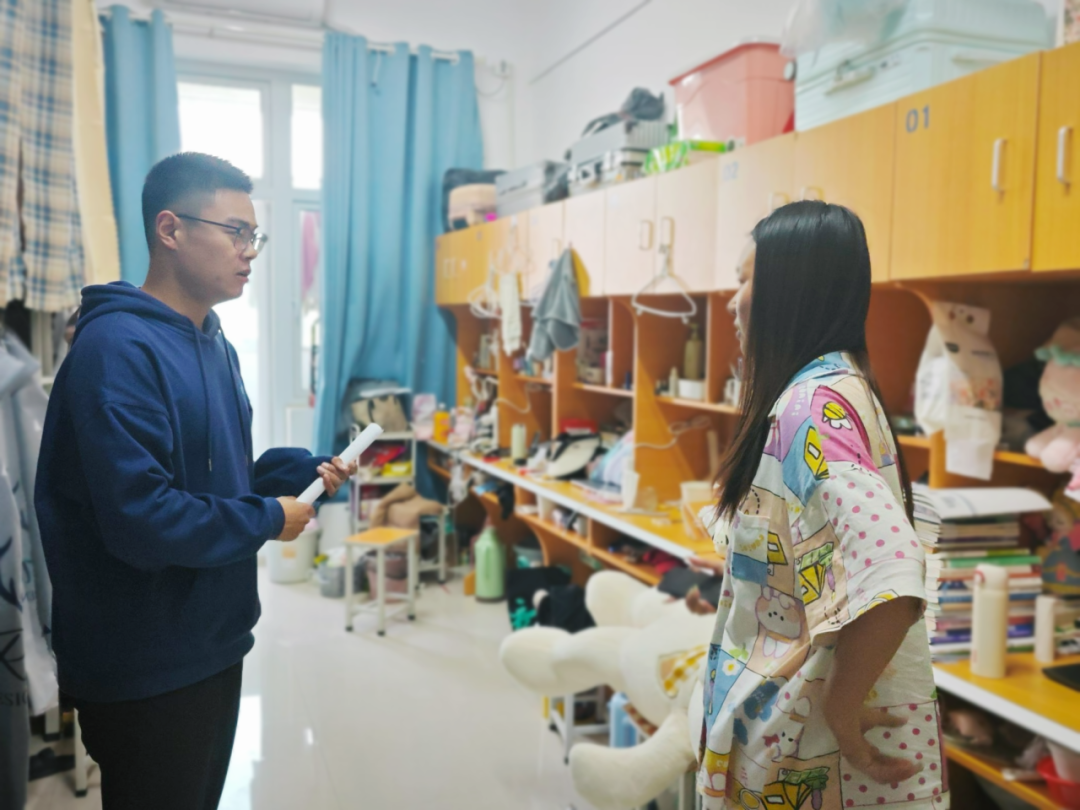 五一假期值守期间,经管学工人入住员工宿舍轮流值班,深入宿舍看望慰问留校员工,与员工进行谈心谈话,了解员工近期思想动态并提供针对性指导与帮助。为维护校园安全稳定,值守期间,不断巡视校园各个角落,重点开展宿舍安全“回头看”工作,进行安全隐患排查,再次筑牢校园安全底线。
