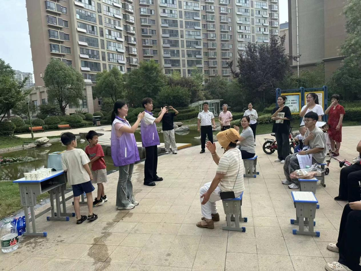 在许昌市长葛市潩水社区,“小脚印”志愿服务队深入社区开展健康宣讲活动,向老人和儿童科普健康知识,传播健康向上生活理念,普及安全自护知识。宣讲结束之后,同学们和社区人员一起开展“吹球过河”游戏,为参与游戏的人员分发礼物。最后,手把手教大家做“清肺拍拍操”。在本次活动中,大家不仅体会到与人沟通的快乐,更明确了当代青年在和谐社会建设、健康中国建设中的责任与担当。
