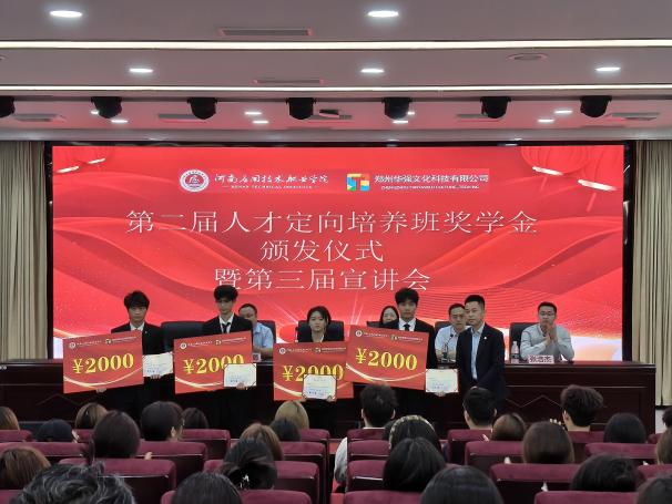 活动伊始,张召哲代表公司对到场的各位嘉宾表示热烈欢迎,向与会领导及同学们详细介绍了企业与公司的合作历程及本次奖学金发放仪式的意义。他表示,双方自合作以来一直在积极探索更为深化的合作方式及模式,第一届定向培养班的成功举办及本次奖学金的顺利发放,是彼此在人才共育、产教融合上互信互任的成果和标志。华强方特文化科技集团股份有限公司是国内知名的大型文化科技集团,是“全国文化企业30强”、是“CCTV品牌强国工程”入选品牌,能和这样的企业持续深化合作一定程度上也说明了企业对公司人才培养质量的认可。