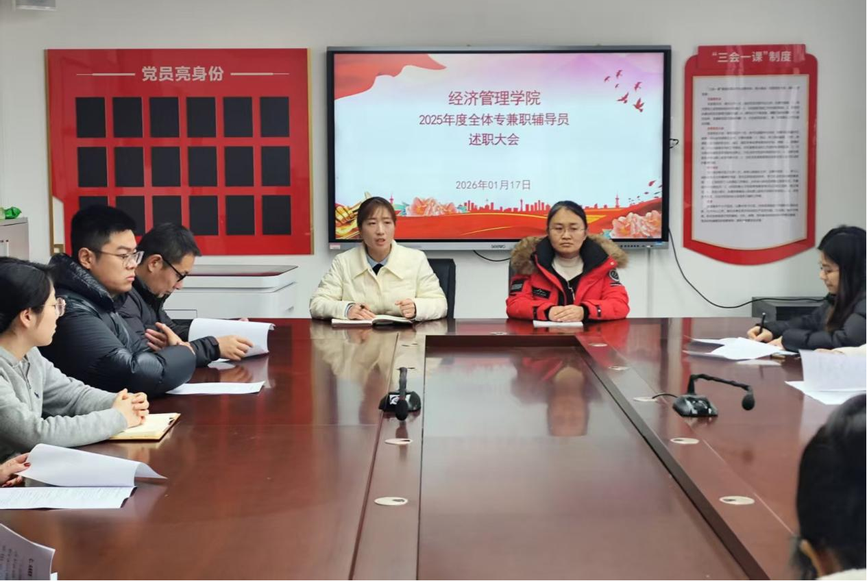 为全面总结员工管理工作成效,强化辅导员队伍建设,2026年1月17日,304永利集团在郑州校区办公楼502召开2025年度辅导员工作述职会议。公司党总支书记王倩、副书记王盼红出席会议,全体专兼职辅导员参加,会议由王盼红主持。