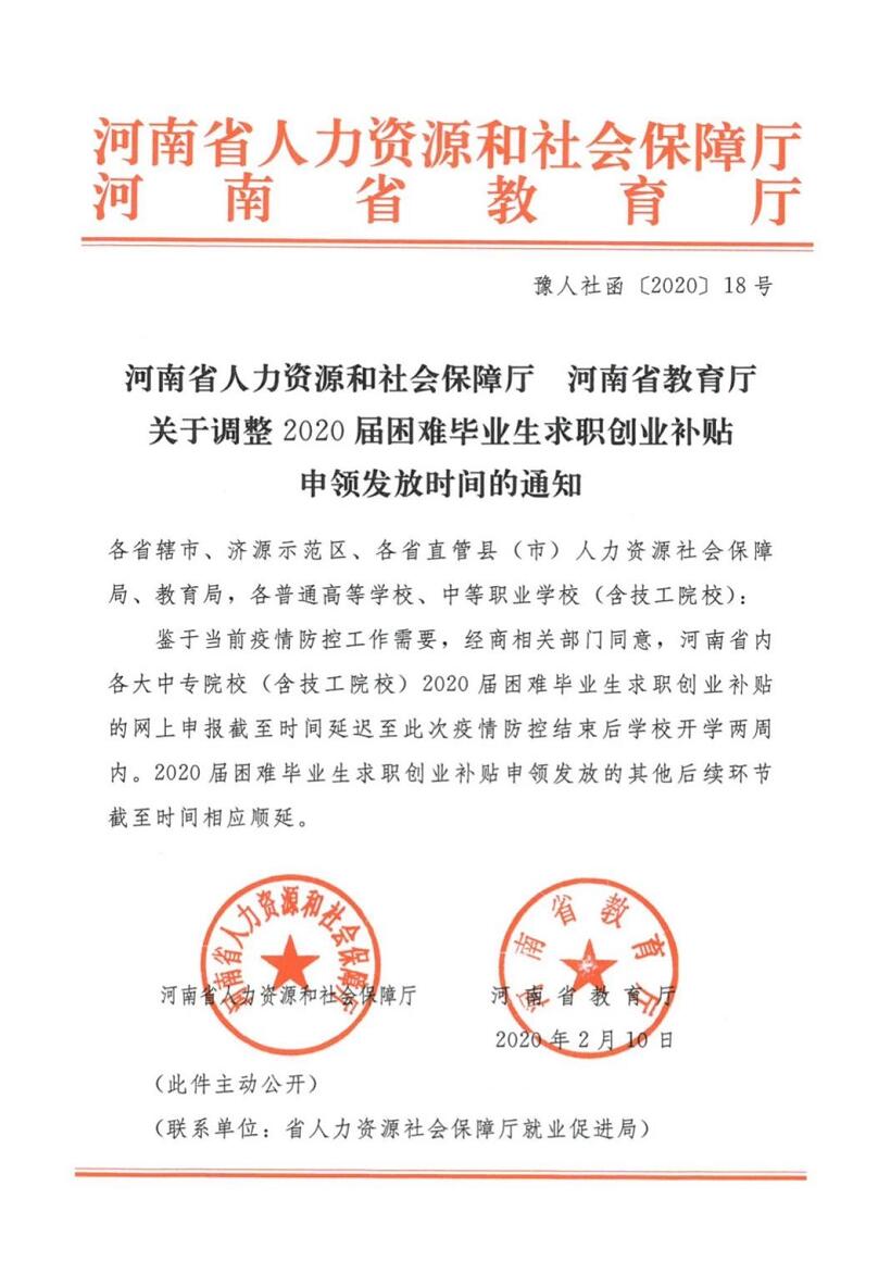@2020届毕业生,求职创业补贴申报时间延后至公司开学两周内