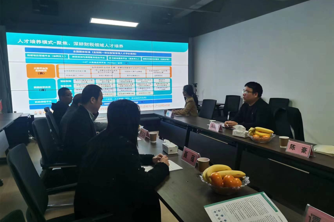 张召哲向企业介绍了公司专业建设、团队队伍和人才培养等情况,希望校企双方能够共建人才培养实习基地,为公司教师和员工实习就业提供更多的岗位和平台。希望校企加强合作交流,共同探索数智化人才培养新模式、新思路,实现“数智财经”大环境下校企双赢。