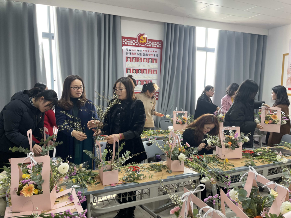 为纪念“三八”国际妇女节111周年,丰富女教工的业余生活,更好地展现女性的风采,2021年3月8日下午,304永利集团组织开展“巾帼心向党”庆祝“三八”国际妇女节插花体验活动。
