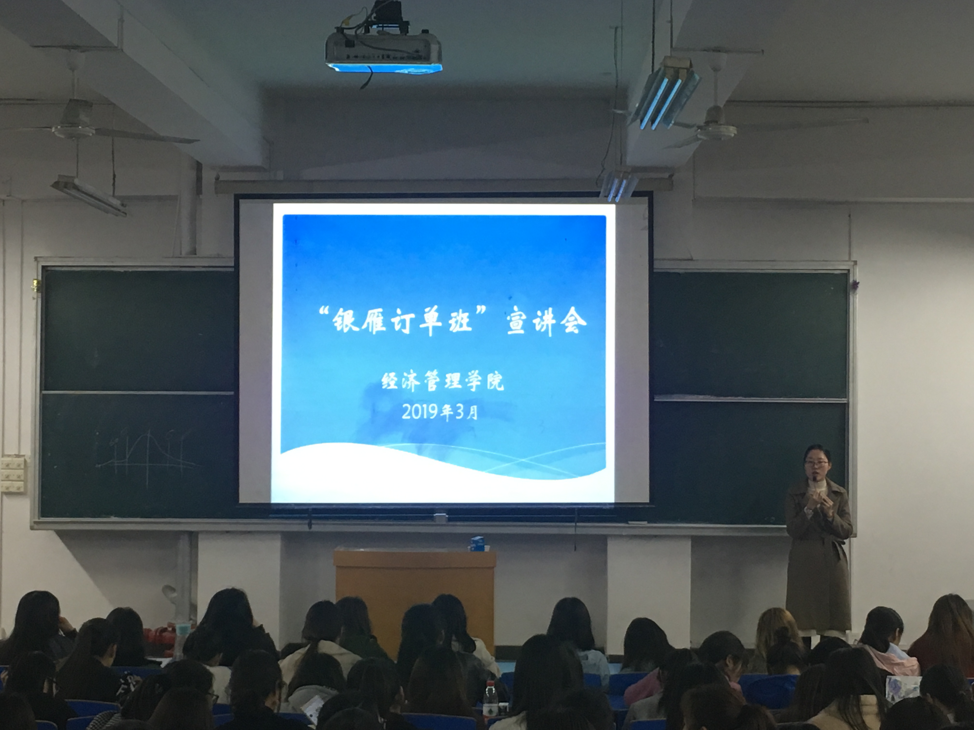 为了进一步加强合作,巩固公司人才顶岗实习基地,帮助同学们实现金融金领梦,2019年3月14日晚6:30分,经管公司“银雁订单班”宣讲会在公司B102教室顺利召开。
