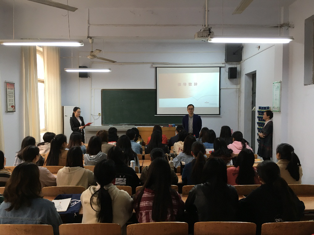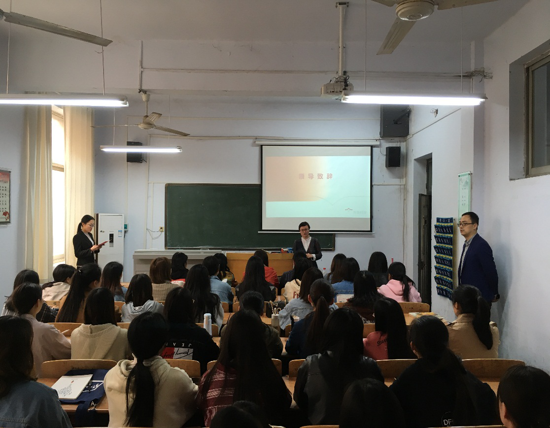 张经理首先对“银雁订单班”的顺利开班表示祝贺,介绍了公司与郑州银雁金融配套服务有限公司多年来的合作成果,并勉励大家要勤奋努力,珍惜在订单班的学习时光。张经理强调,校园内的课堂虽然能教给同学们理论知识和专业技能,但是要想在社会这个大舞台立足,还需要大家掌握更能适应工作岗位的专项技能,而这些就需要行业领域内的老师来带领大家学习。