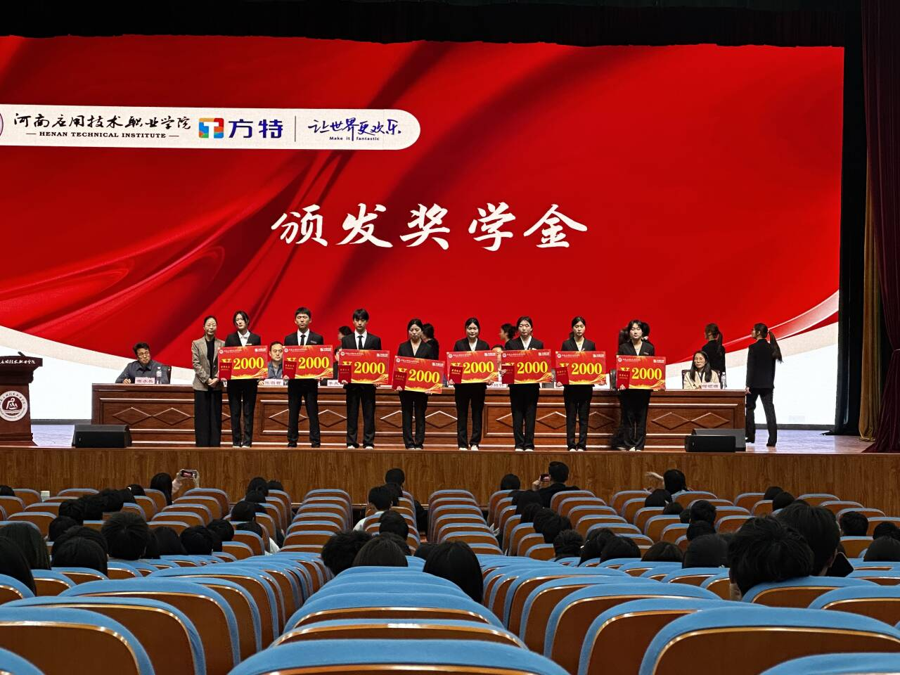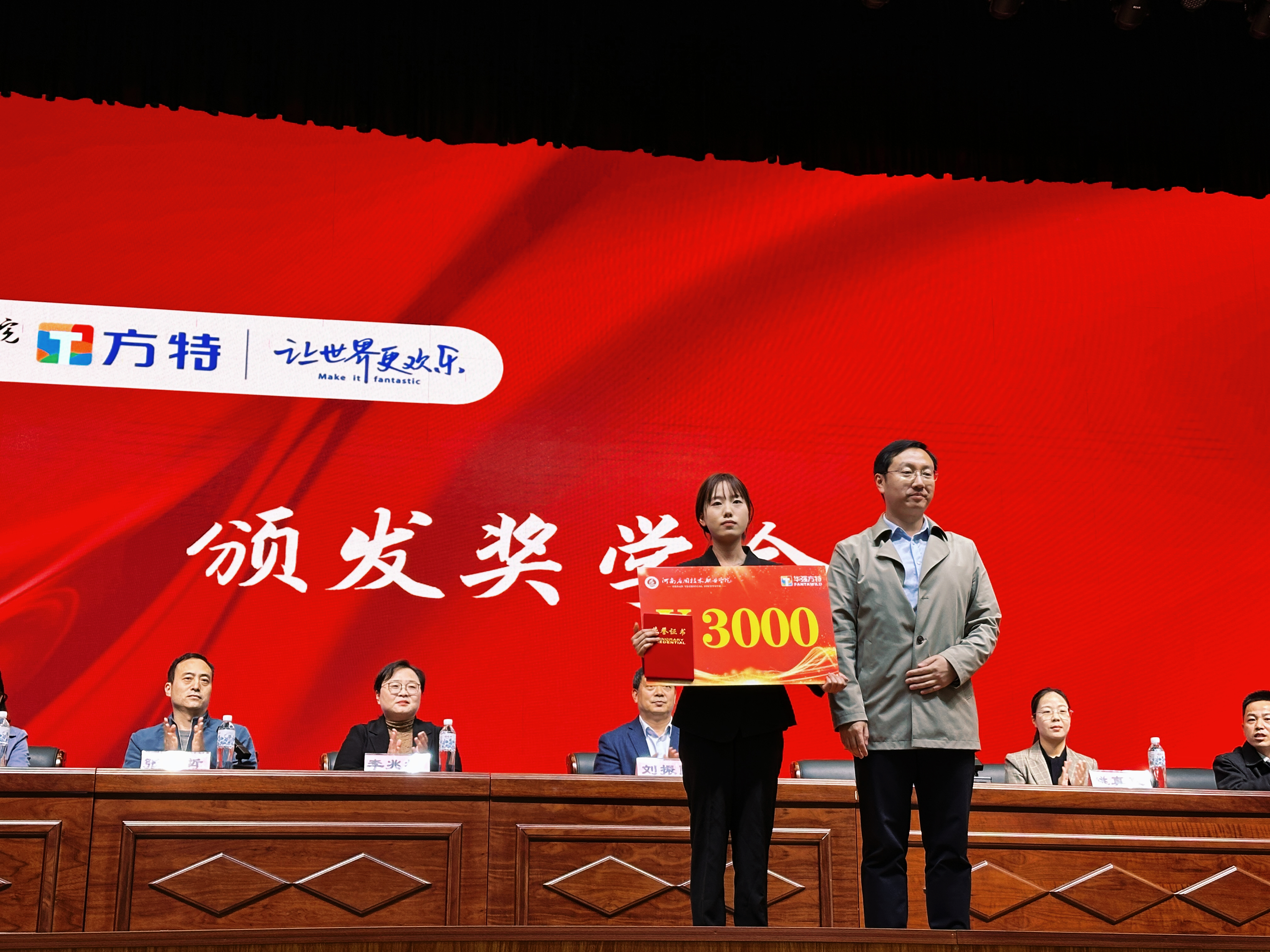 副董事长刘振民致欢迎辞,向多年来关心支持公司发展的企业表示热烈欢迎,由衷感谢企业和社会对公司、员工的认可和期盼,向获得奖学金的应院学子表示祝贺。他强调2024年是公司抢抓战略机遇全力冲击国家级“双高”校的关键之年,公司将不断挖掘和凝练企业奖学金的文化内涵,加强员工“感恩、诚信、创新、奉献”的价值观教育,强化奖学金的育人功能,希望同学们常怀感恩之心、感激之情,树立远大理想、勤奋刻苦学习、不惧挫折困难,争做有志、有才、有为青年。