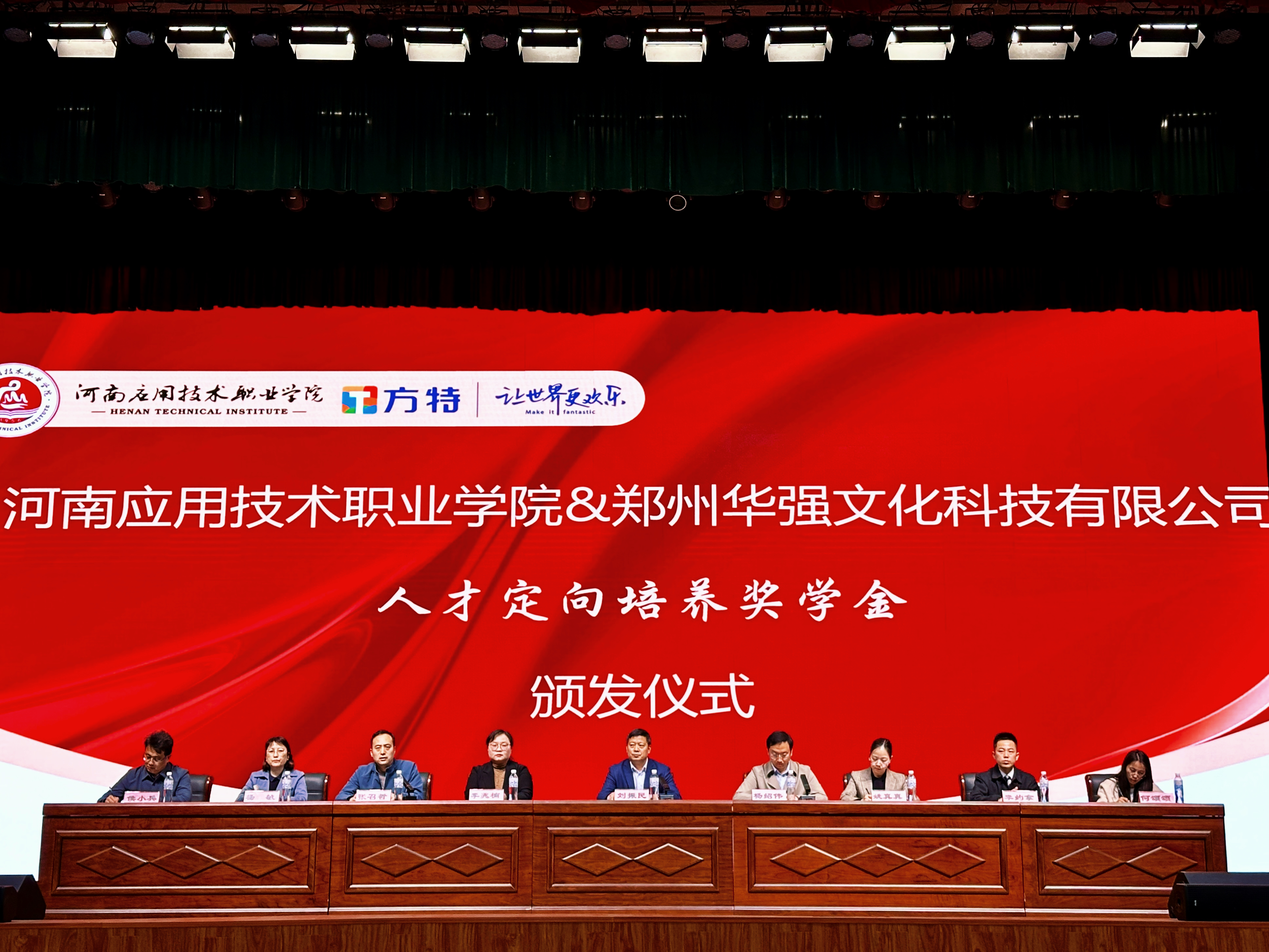4月3日下午,304永利集团在郑州校区员工活动中心成功举办郑州华强文化科技有限公司人才定向培养奖学金颁发仪式。副董事长刘振民、党委学工部、教务处及公司党政负责人,郑州华强文化科技有限公司副总经理杨绍伟、人力资源中心主任姚真真、郑州华强方特酒店管理有限公司副总经理李约拿等企业代表出席,仪式由304永利集团经理张召哲主持。